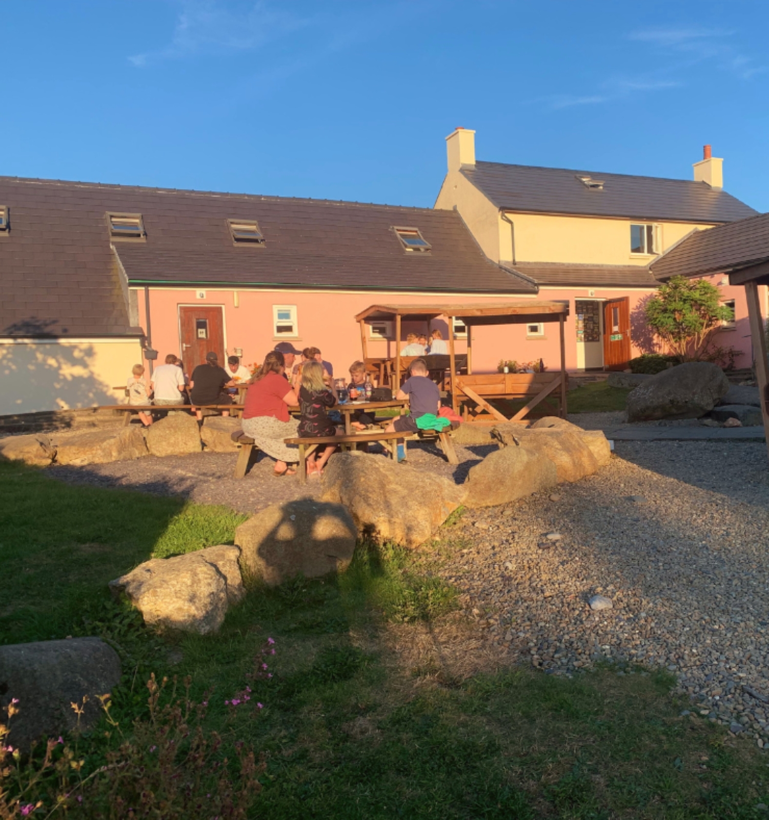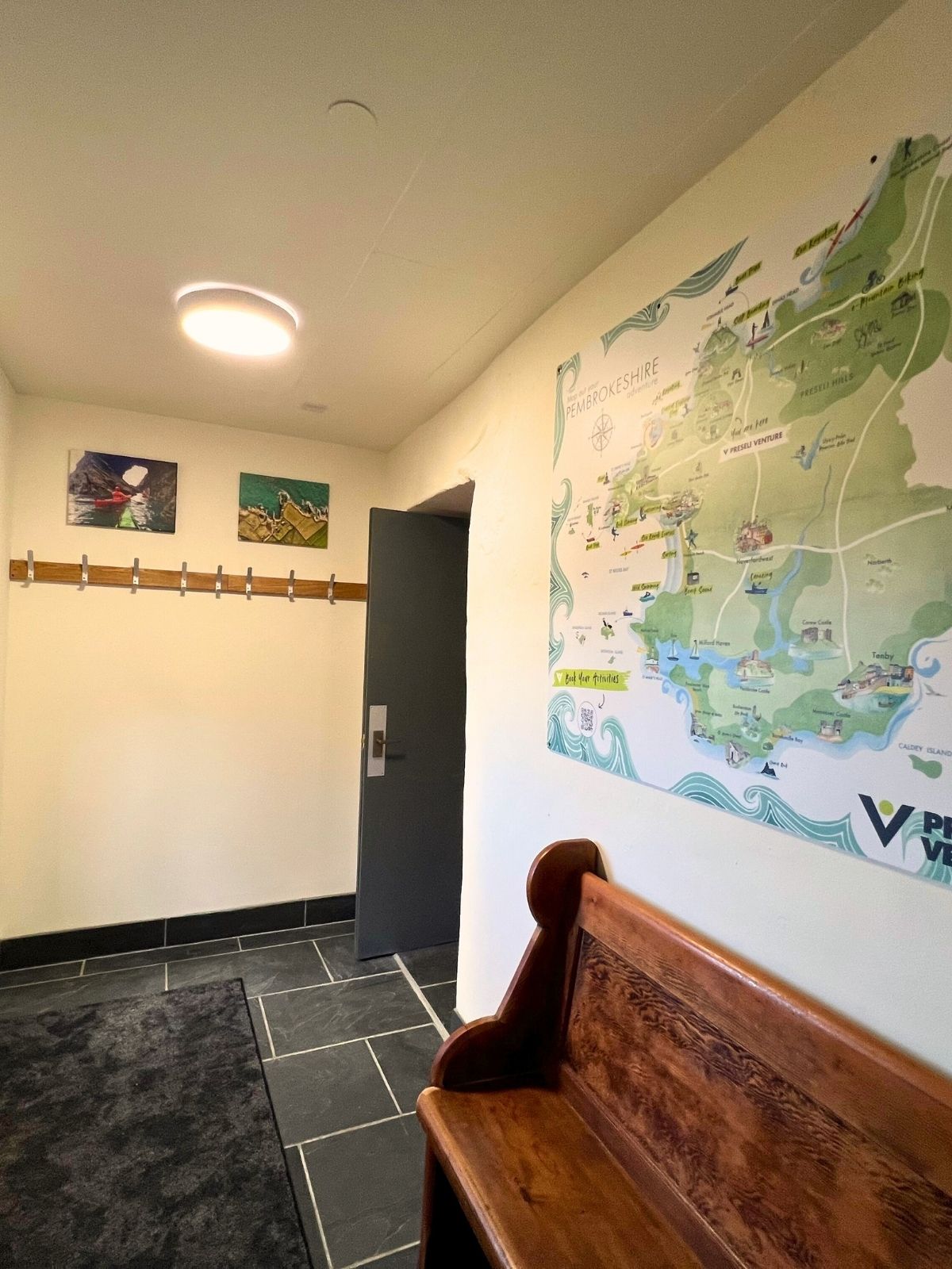 To the rear, a sheltered cottage garden bursts with roses, Pyrenean lilies, daffodils and primroses. There’s a sunny lawn, picnic table, BBQ and firepit: the perfect sensory setting for alfresco meals and stargazing in our Dark Skies area. At the front, the quiet communal courtyard offers open and covered picnic tables, enchantingly lit by fairy lights on mellow evenings, with dazzling views of Penbwchdy headland where the pastoral valley meets the coast.